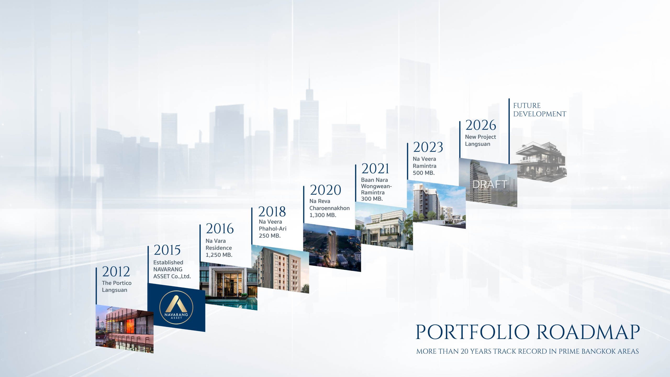 Navarang asset company was established by Phromyothi family in 2015 and is aimed to undertake property development business for the family. We focus on 3 key principles for product development; privacy, luxury, and quality to offer best product. Also, our key development projects are committed to create ideal residents and superior living experience for our buyers.